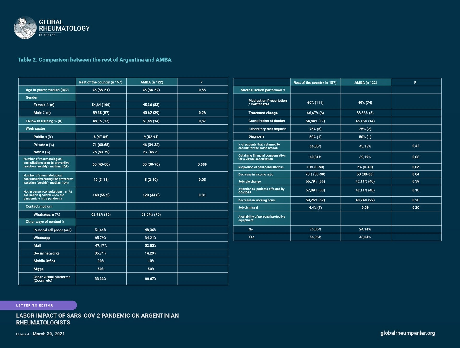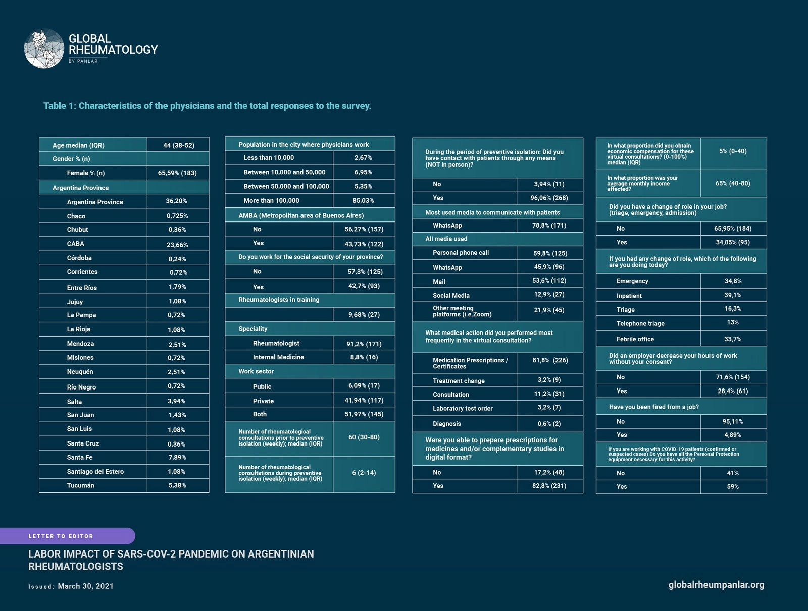 Impacto laboral de la pandemia de SARS-CoV-2 en los reumatólogos argentinos