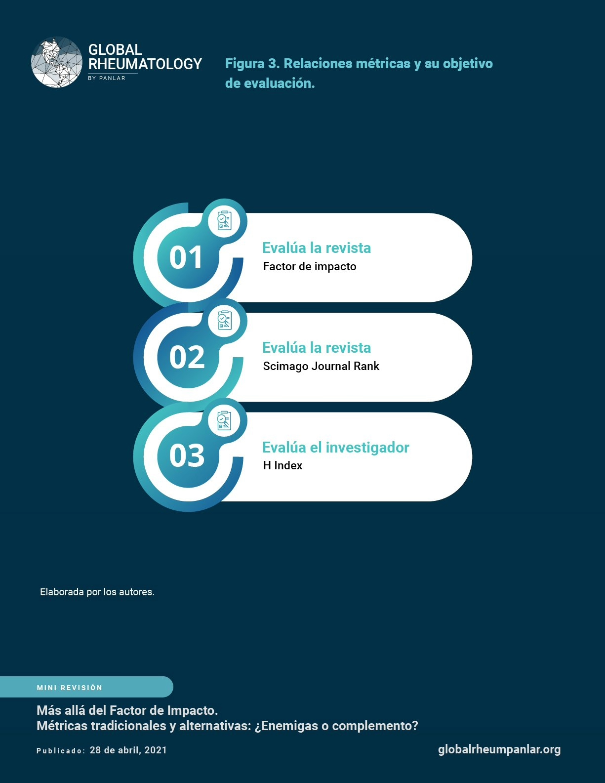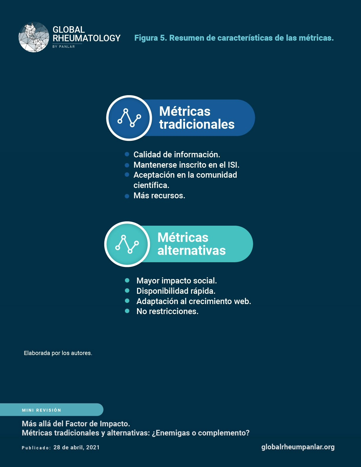 Mejia Sanjuanelo AM, Manzur Barbur MC, Caballero-Uribe CV. Más allá del Factor de Impacto Métricas tradicionales y alternativas ¿Enemigas o complemento? [Internet]. Global Rheumatology. Vol 2 / Ene - Jun [2021]. Available from: https://doi.org/10.46856/grp.13.e081